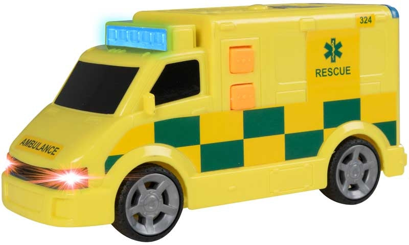 The Teamsterz Small Light & Sound Ambulance encourages learning through play. It features exciting emergency blue flashing lights and siren sounds, headlights and engine sounds. Roleplay responding to a medical emergency, as the free wheeling vehicle races to the rescue.